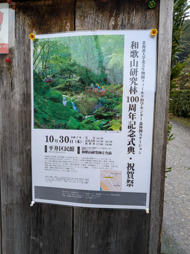 2025年9月に北海道大学北方生物圏フィールド科学センターセンター長 宮下和士教授より「北海道大学和歌山研究林創立100周年記念式典・祝賀祭」へのご案内を関西同窓会会長宛てに頂き、出席させていただきましたので下記にその報告をします。 北大関西同窓会会長 植松高志