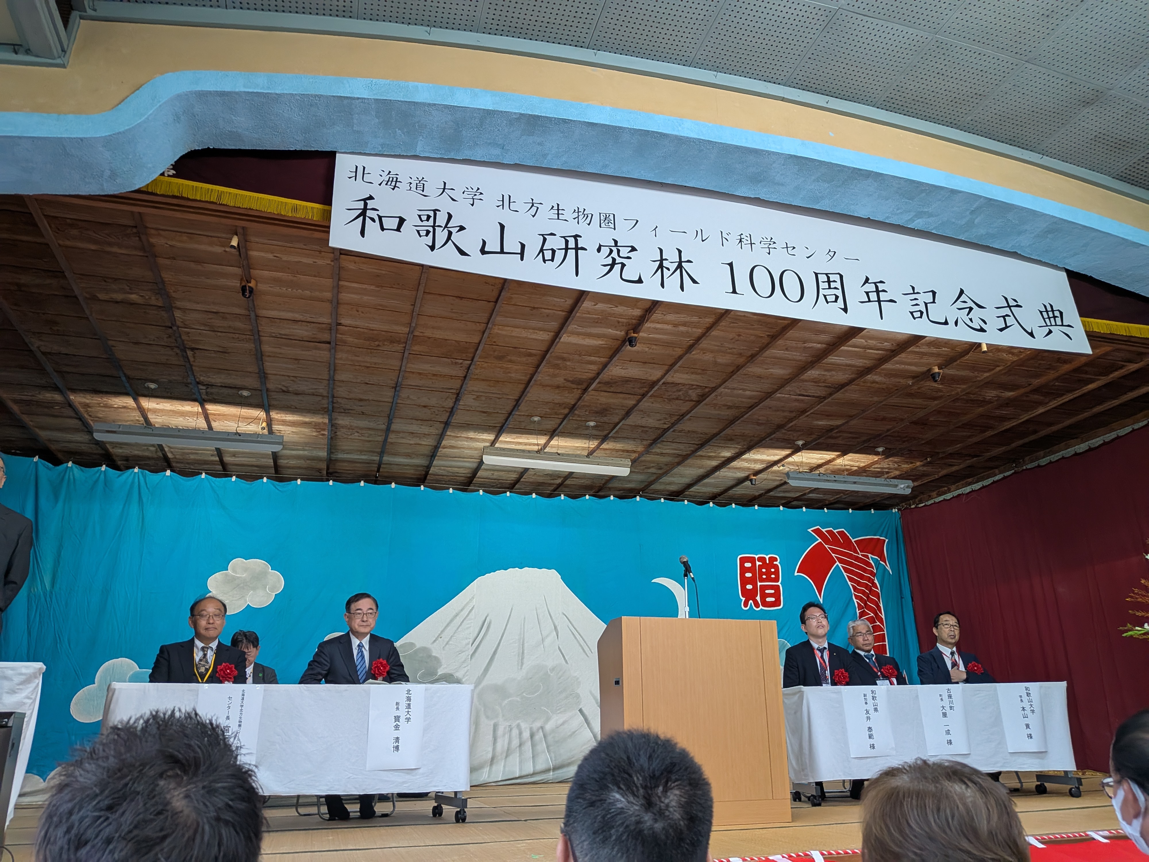 その後、本学の道外唯一の教育・研究施設として、平井集落、古座川町、和歌山県の皆様に長きに支えていただいていることに感謝し、その先の100年に向けての連携・協働と発展を祈念して100周年記念式典・祝賀祭を開催します。」